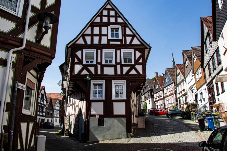 Biedenkopf verfügt über eine schöne Altstadt mit gut erhaltenen Fachwerkhäusern und gemütlichen Gassen, die entdeckt werden wollen. Die Fachwerkhäuser der Altstadt, die heute das Stadtbild prägen, stammen aus der Zeit nach den großen Bränden. Fast alle Häuser sind „giebelständig“, d. h. sie weisen mit der Giebelseite zur Straße, so dass pro Haus wenig Platz verbraucht wurde, denn Platz war innerhalb des Mauerrings knapp. Nur die Häuser reicherer Besitzer stehen mit der Traufseite zur Straße. Durch die Lage am steilen Hang waren oft zwei Eingänge in verschiedenen Stockwerken vorhanden. An der Vorderseite führt der Eingang ins Untergeschoß, ehemals den Ställen vorbehalten, und auf der Rückseite ins Obergeschoß mit den Wohnräumen.
